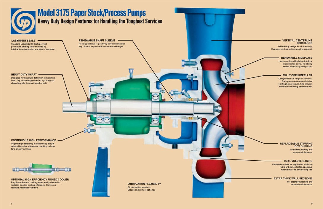 The Model 3171 pump is offered with a variety of bearing options to meet specific service requirements: optional fluted rubber with rigid shell, bronze, iron and (standard) carbon.